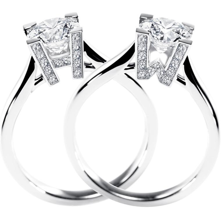 Take Harry Winston's fun "HW" diamond engagement ring, which features a 1.02ct round-brilliant diamond. Viewed head on it looks like a traditional solitaire engagement ring, but from the side you can see the pavé-set initials of the brand's founder holding the diamond in place. Or Graff's 1.22ct heart-shaped diamond ring, set between two tapered baguette diamond shoulders, which couldn't be clearer in its romantic intentions.