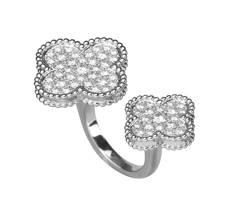 The Van Cleef & Arpels Between-The-Finger Lotus ring, in white gold and diamonds, worn by ...