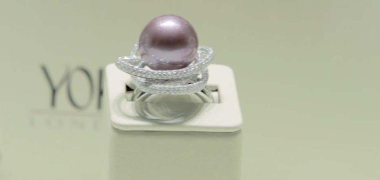 Yoko London purple pearl ring floats in orbit amongst diamonds.