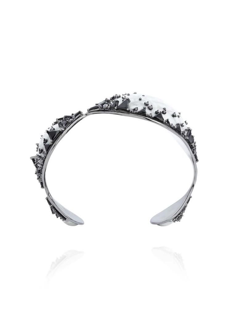 Ferenando Jorge Fusion cuff featuring black rhodium and black diamonds spanning out from smooth, marbled ...