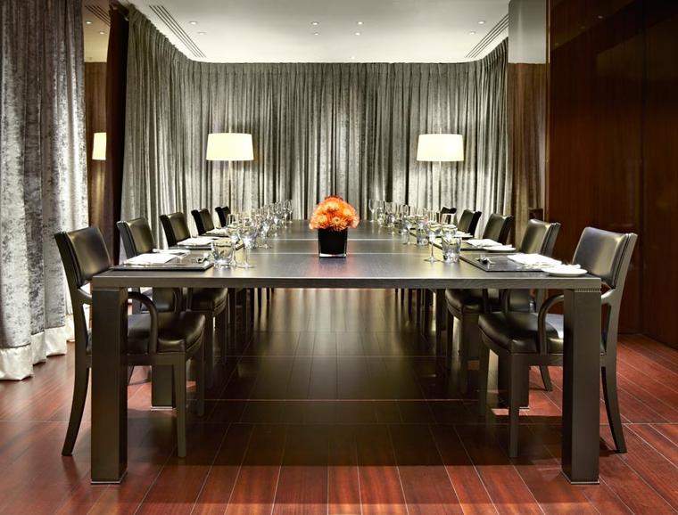 The sleek, bold, and confident lounge of the Bulgari Hotel.