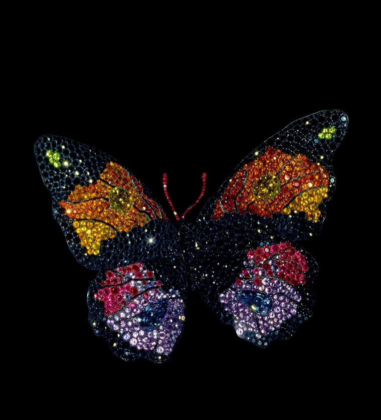 JAR Butterfly brooch with sapphires, fire opals, rubies, amethyst, garnets and diamonds set in silver ...