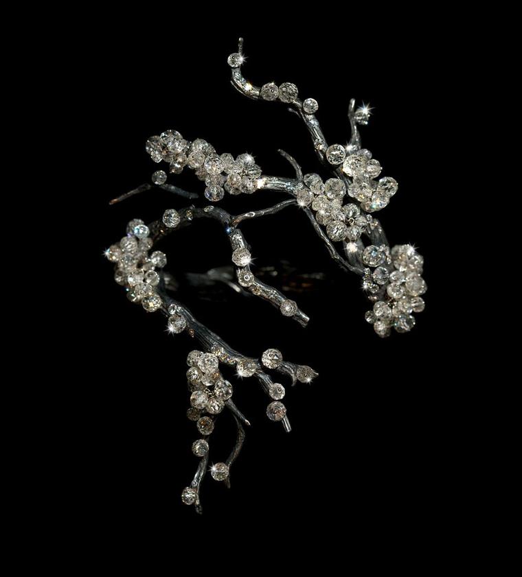 A gold, diamond and green garnet Parrot Tulip bangle by JAR achieved $3,595,853 at Christie's ...