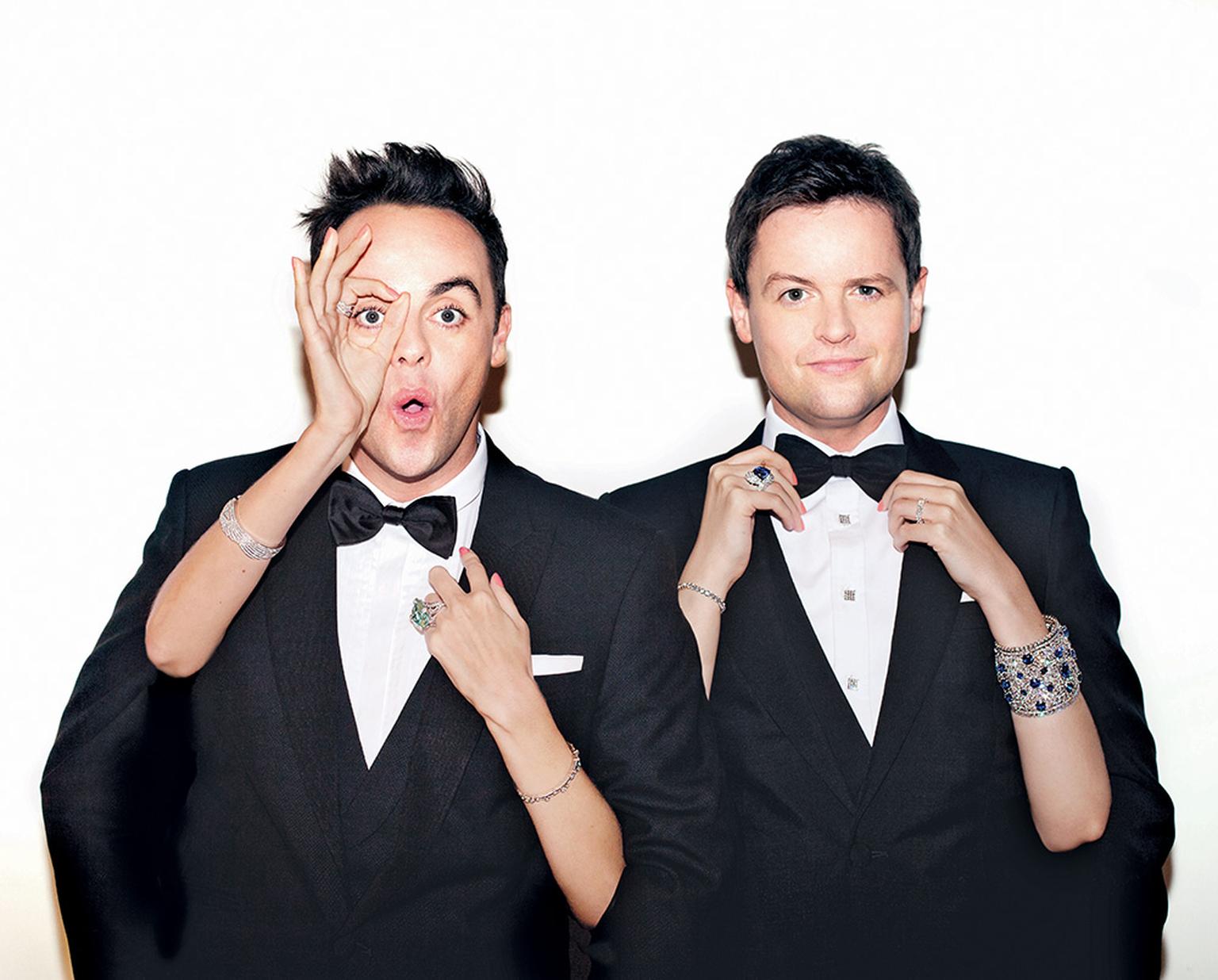Ant and Dec modelling jewellery by Garrard, Dior, Boodles, Adler, Tiffany & Co. and Graff in the March issue of 'Tatler'. Photographer: Squiz Hamilton.