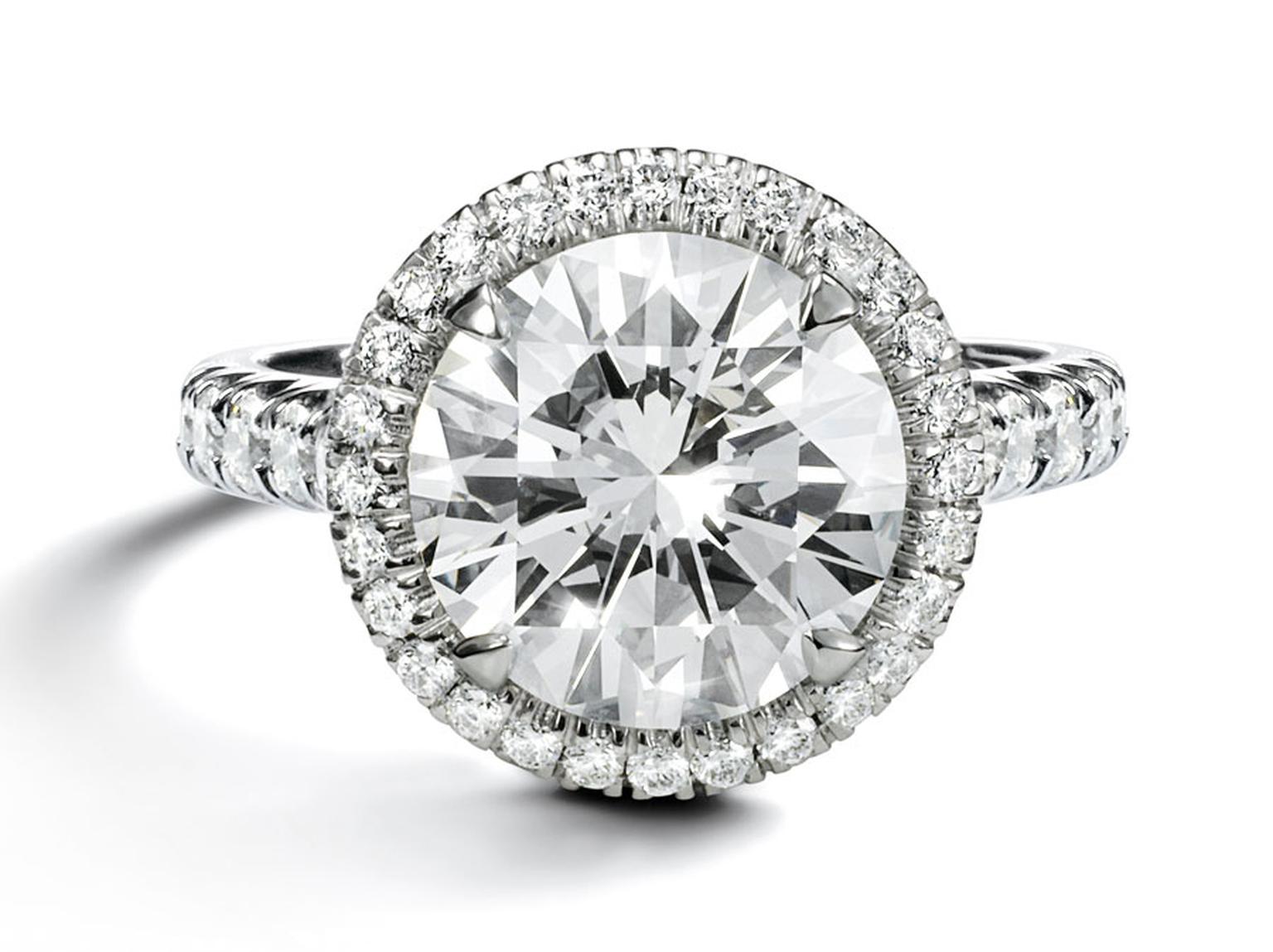 The Solitaire Cartier Destine ring in platinum, paved with brilliant-cut diamonds and with a brilliant-cut diamond central stone, from 0.40 to 2.99 carats. PHOTO: Helmut Stelzenberger Cartier 2012
