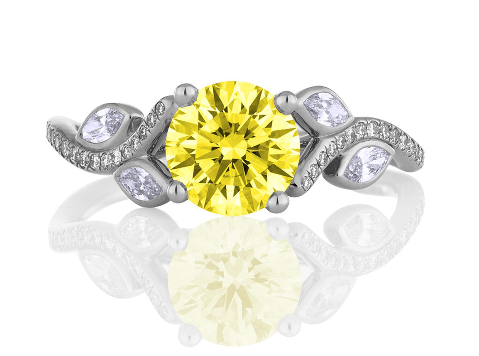 De Beers Adonis Rose Yellow Diamond solitaire engagement ring in platinum set with melée diamonds (£POA; available by special order).