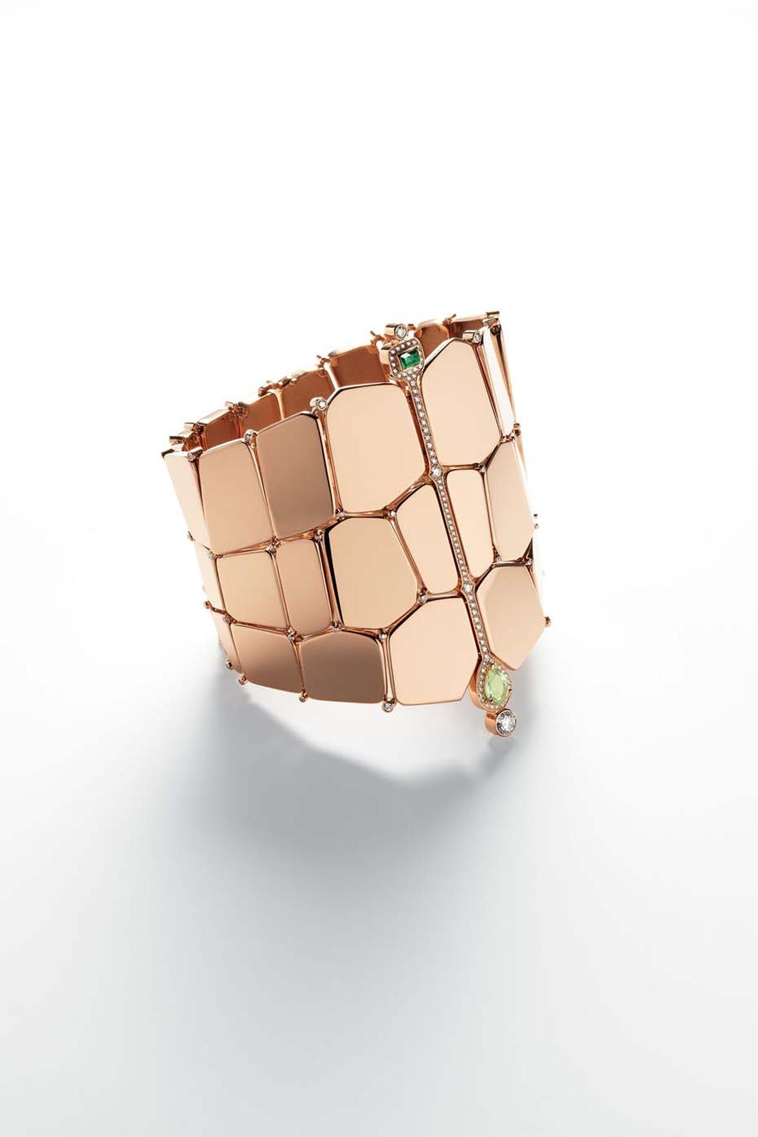 Hermès Niloticus rose gold bracelet set with a pear-shaped peridot, iolite and brilliant-cut diamonds.