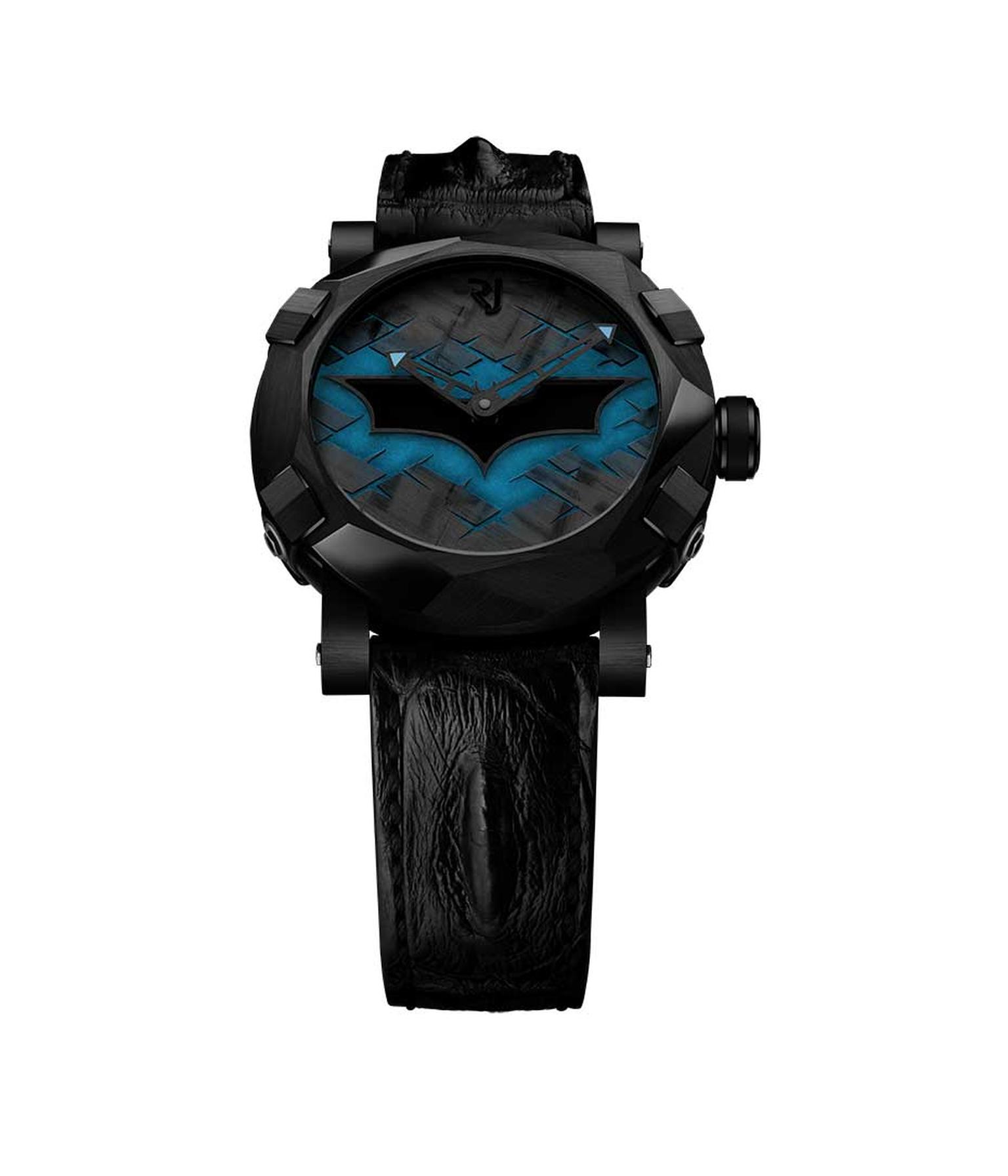 Batman is always a popular choice of costume on Halloween and Swiss watchmaker Romain Jerome is celebrating the 75th anniversary of the Dark Knight with a very dark timepiece that recreates the angular contours of the Batmobile on its dramatic 46mm black PVD-coated case. On the dial, a black lacquered Batman symbol is surrounded by a halo of luminescence - the legendary Bat-Signal - set against the Gotham City skyline. Fitted with a mechanical, self-winding movement, the watch is limited to 75 pieces.